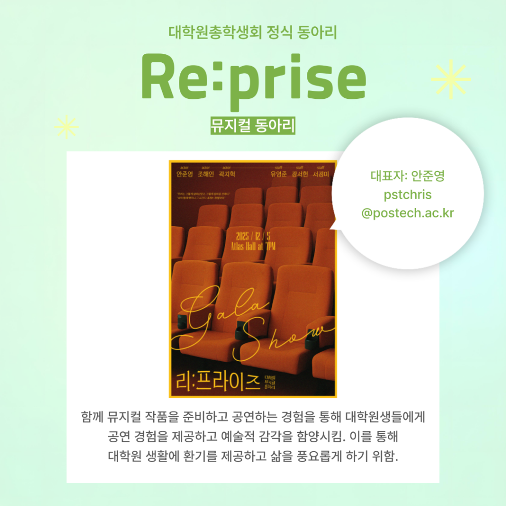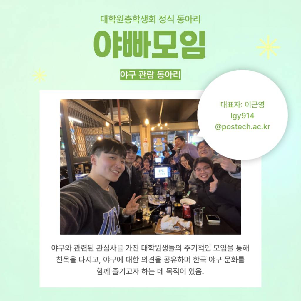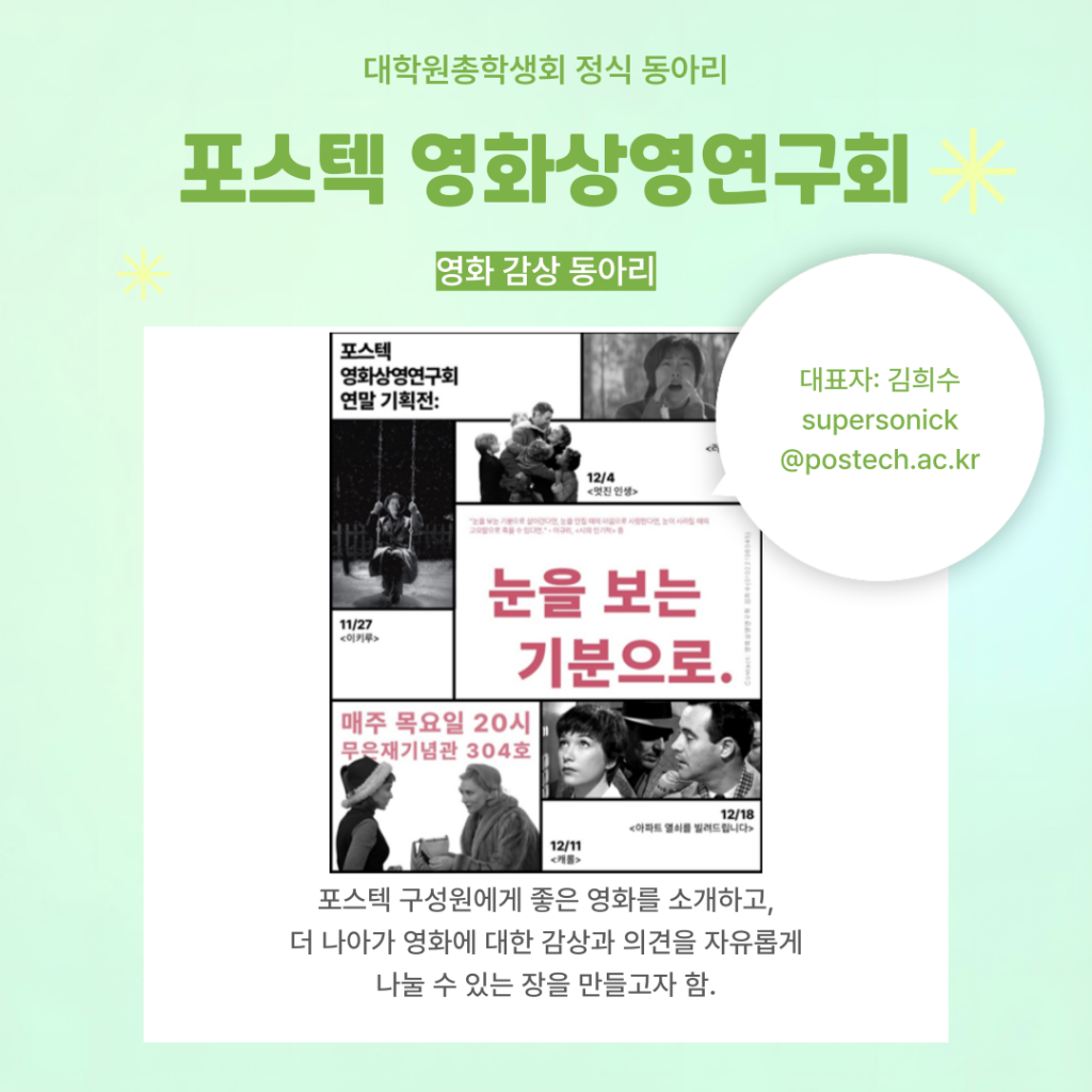 가동아리 신청 접수는 포비스라운지 학생게시판, 대학원 총학 인스타그램에서 확인하실 수 있습니다.