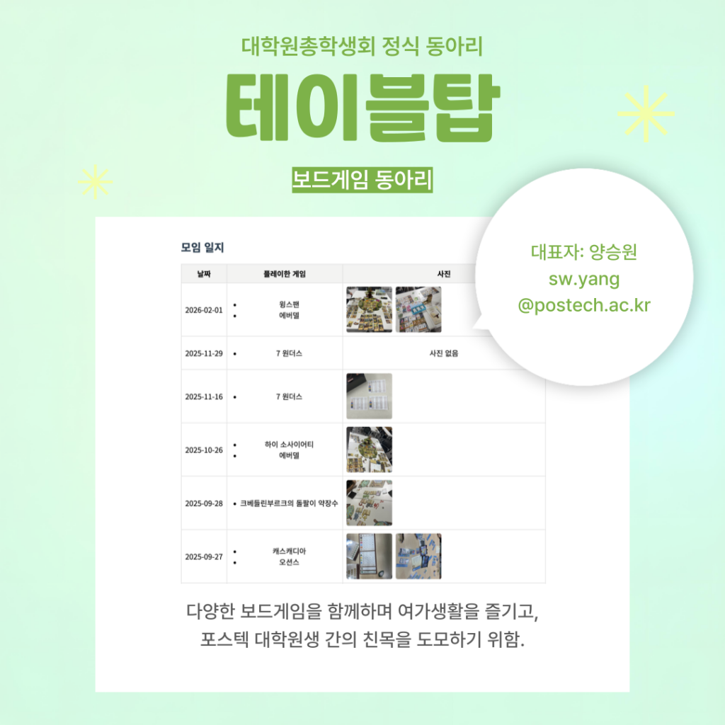 2026 1학기 대학원 동아리 목록입니다.
